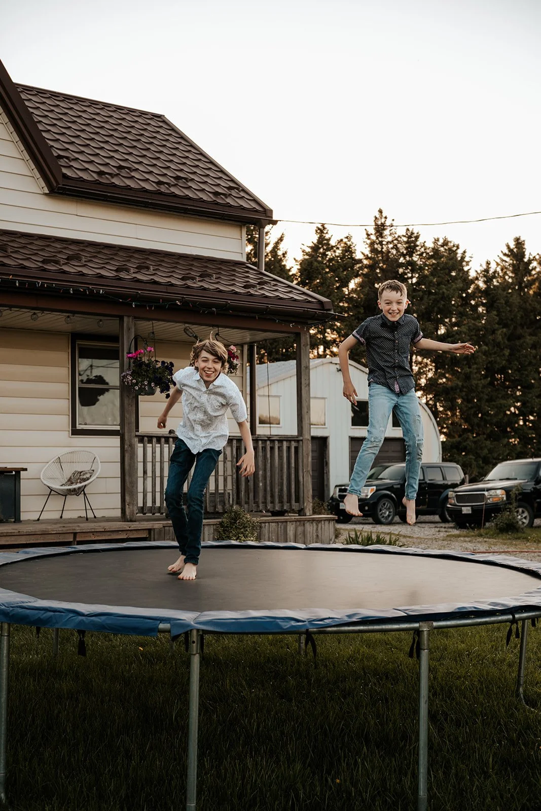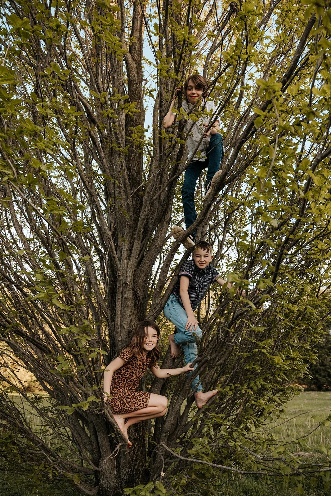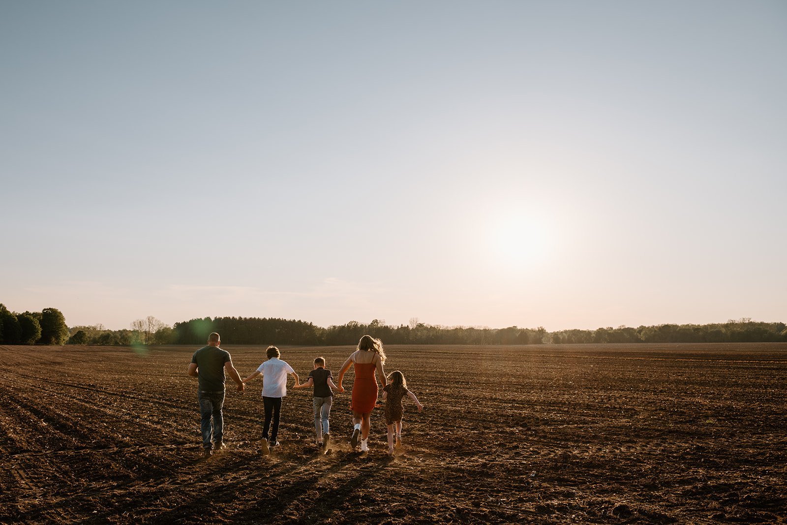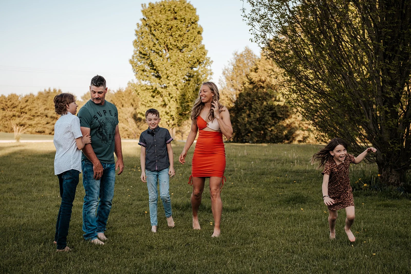 We let the animals go back to their barn and asked the kids to decide where to go next. A few games of tag were played, trees were climbed and we couldn’t forget to include their beloved trampoline as well. With the sun setting, a race through a nearby field felt like a cinematic end to this laid-back evening session.