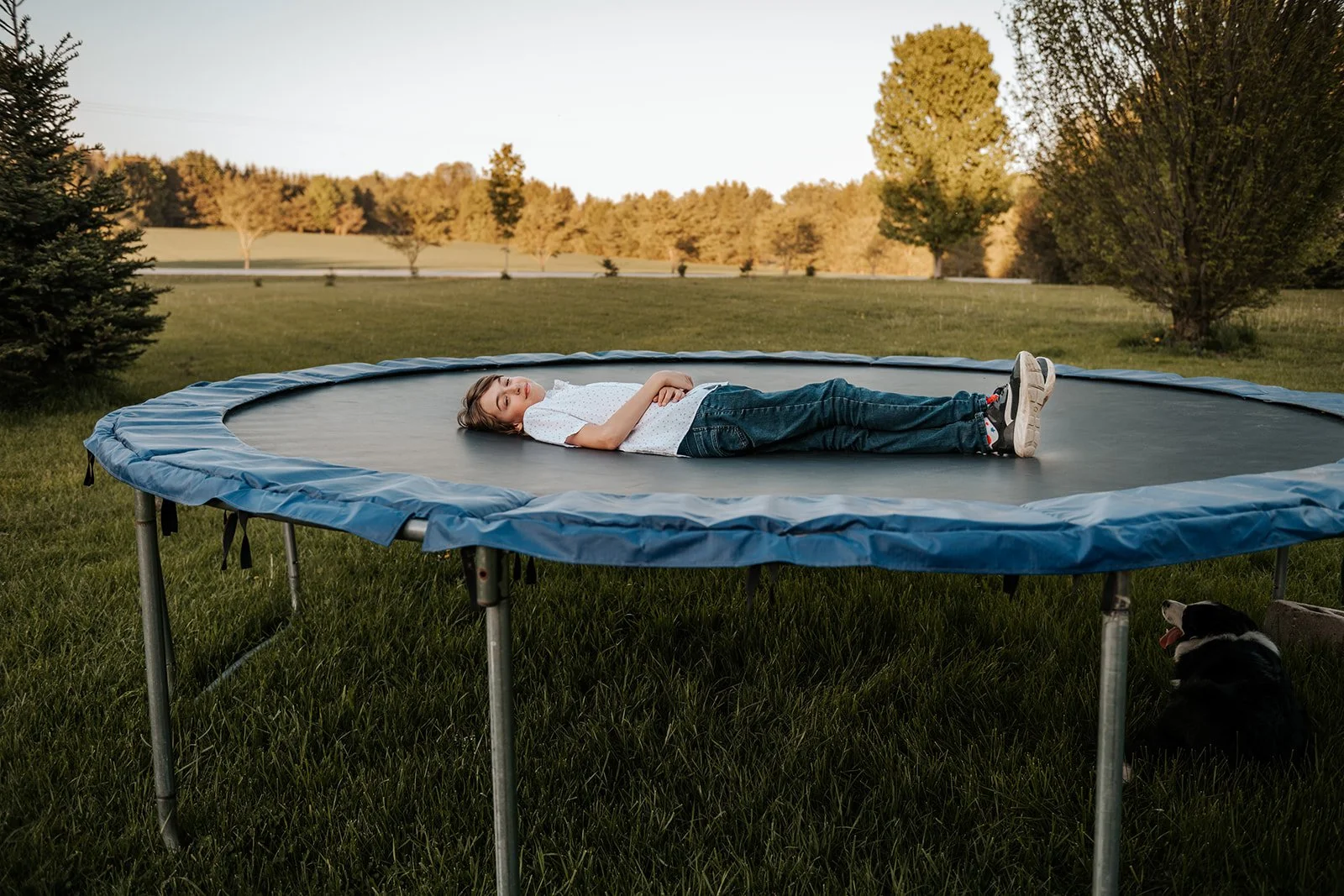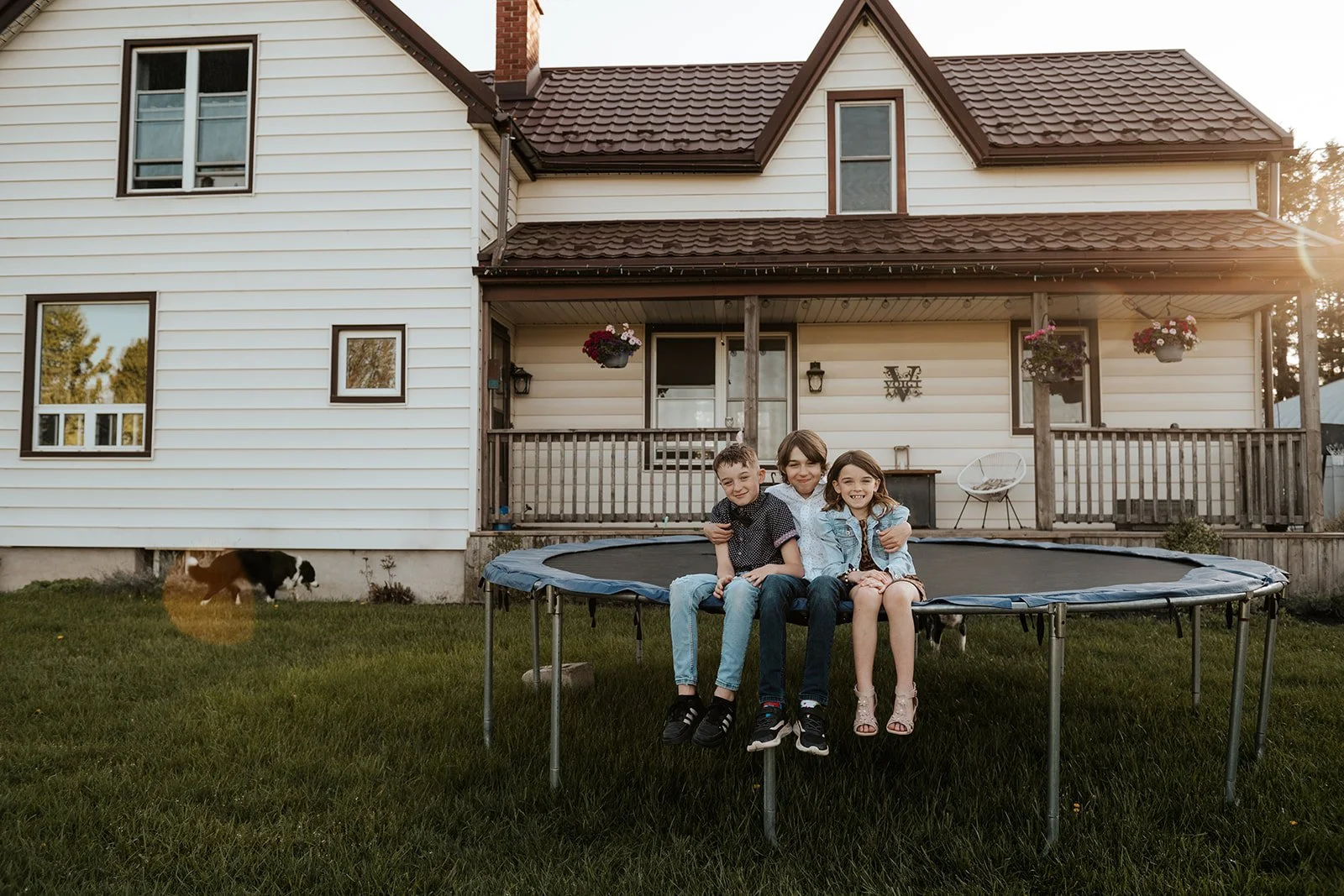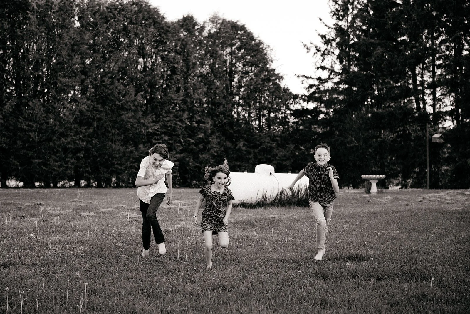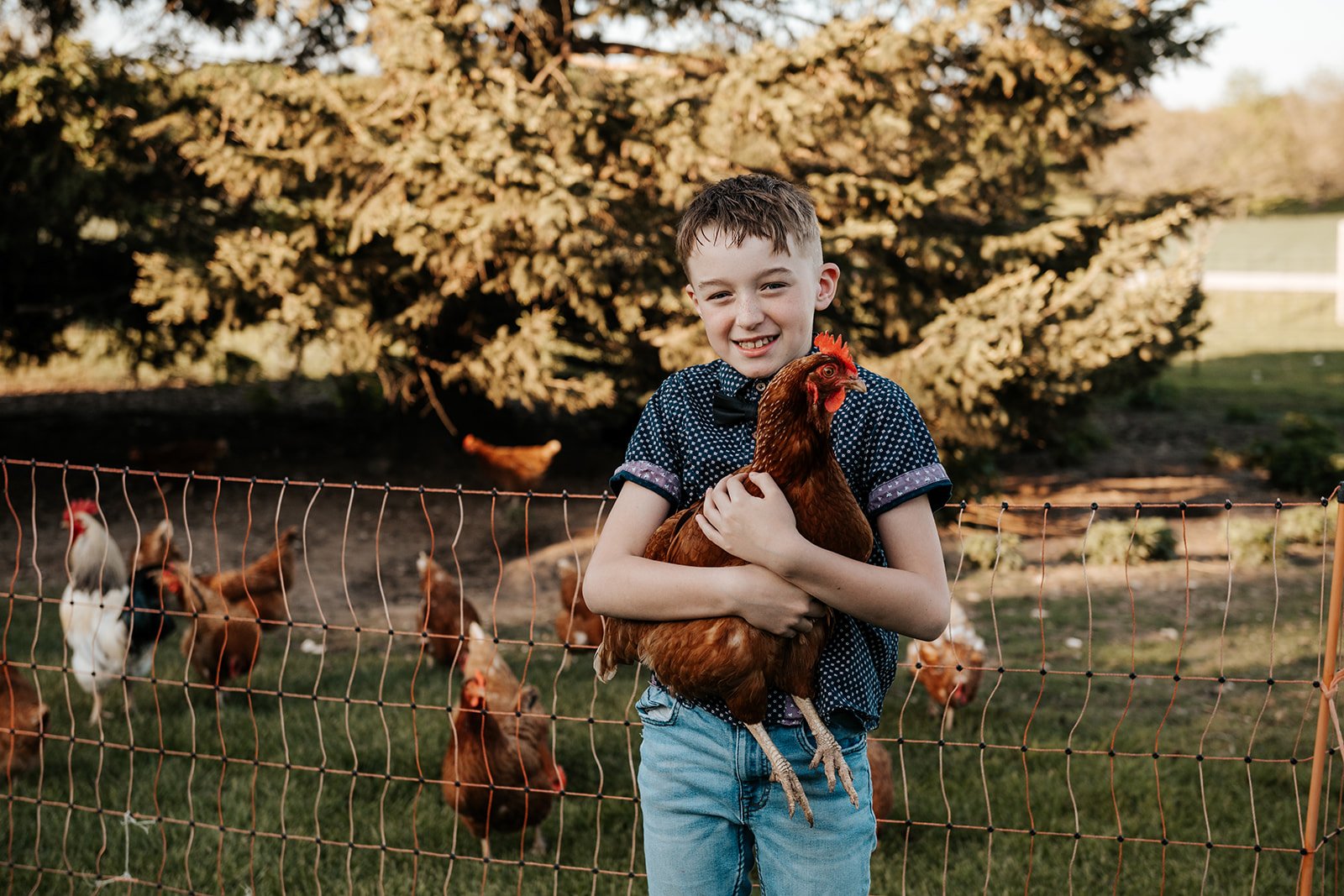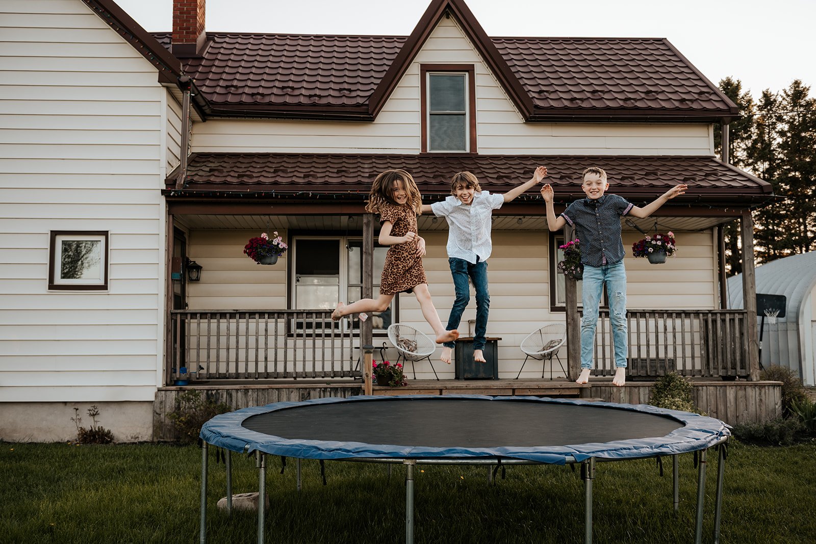 We let the animals go back to their barn and asked the kids to decide where to go next. A few games of tag were played, trees were climbed and we couldn’t forget to include their beloved trampoline as well. With the sun setting, a race through a nearby field felt like a cinematic end to this laid-back evening session.
