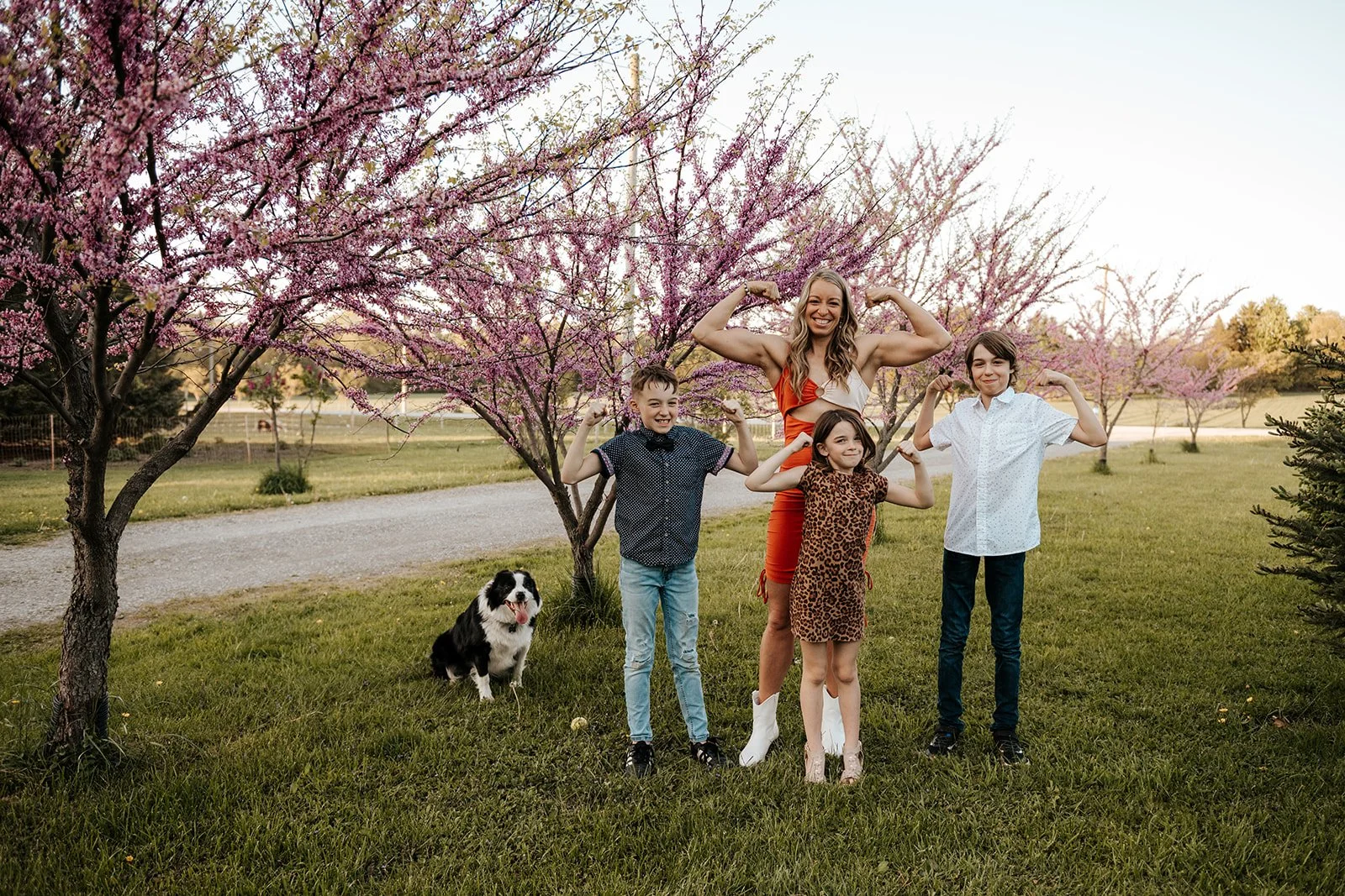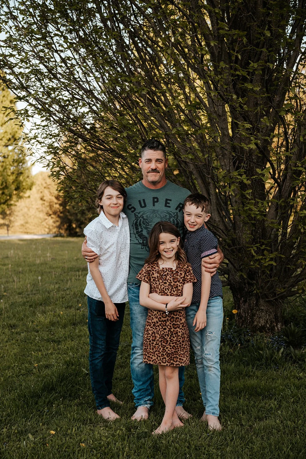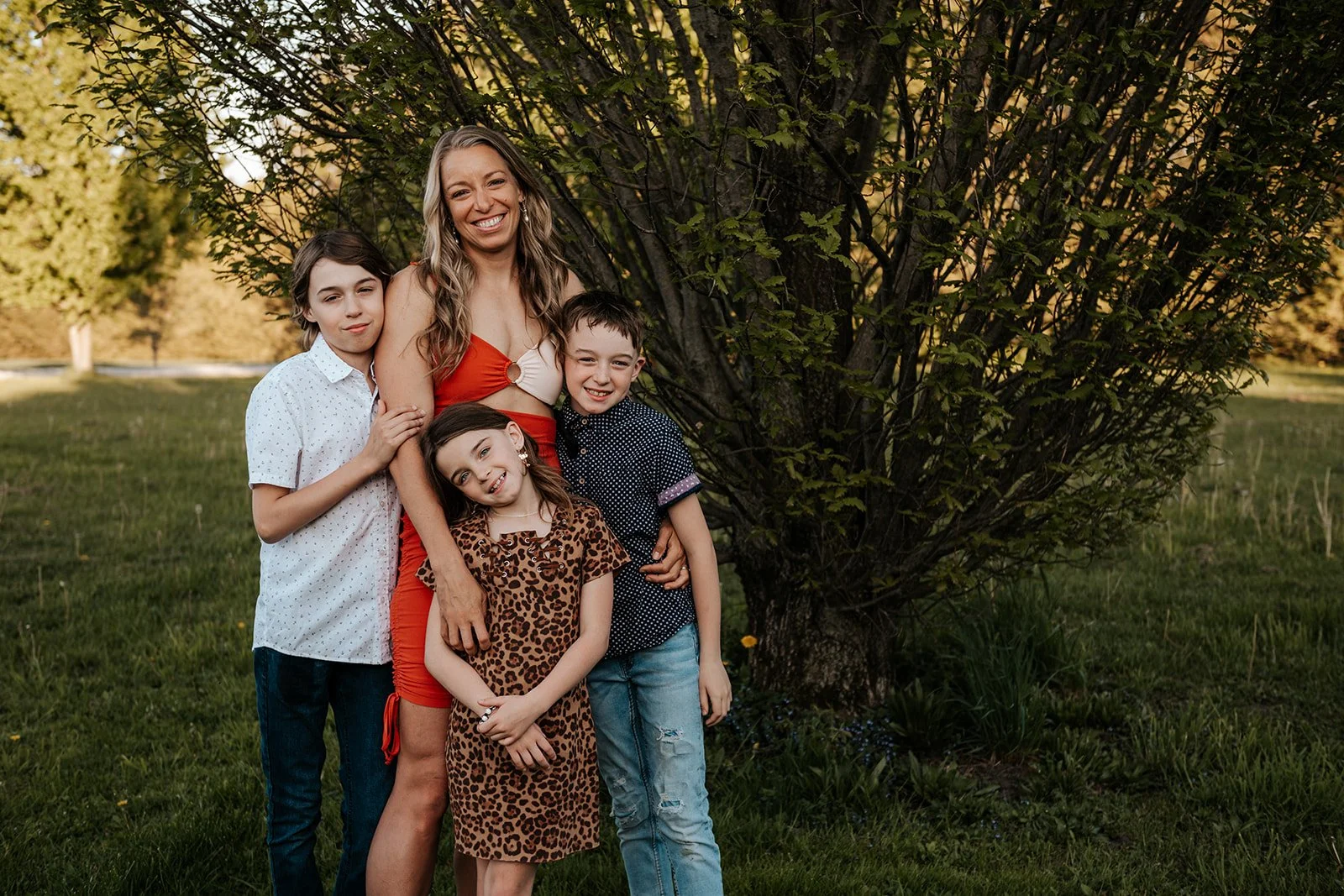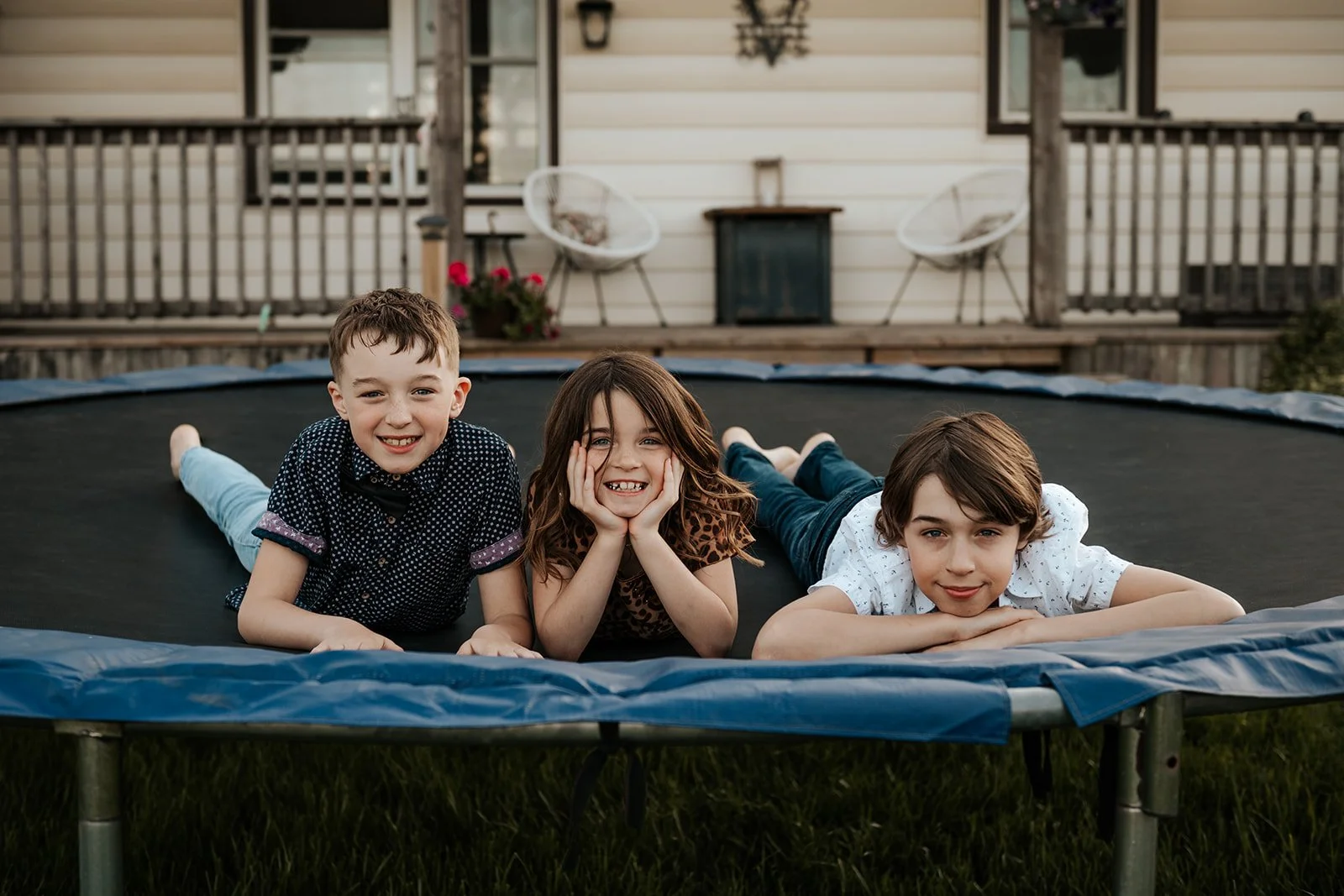 We let the animals go back to their barn and asked the kids to decide where to go next. A few games of tag were played, trees were climbed and we couldn’t forget to include their beloved trampoline as well. With the sun setting, a race through a nearby field felt like a cinematic end to this laid-back evening session.