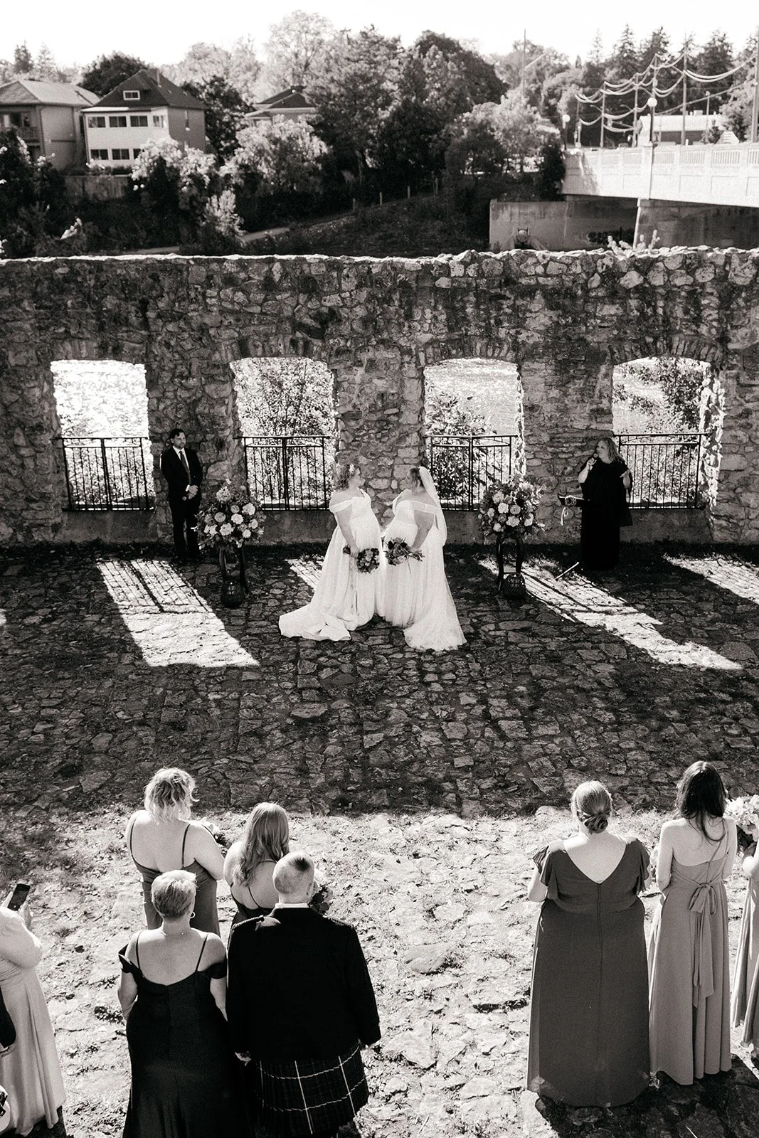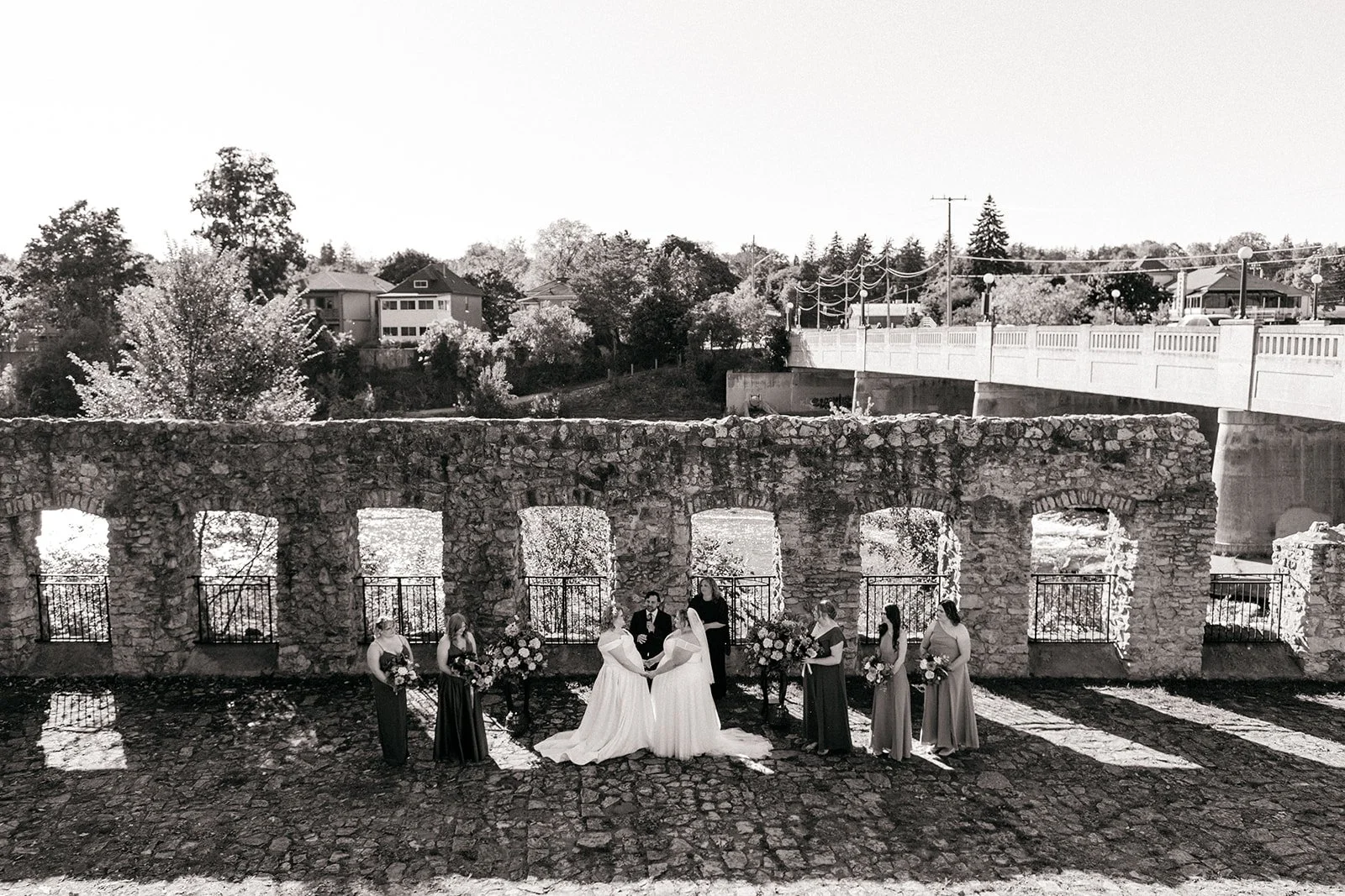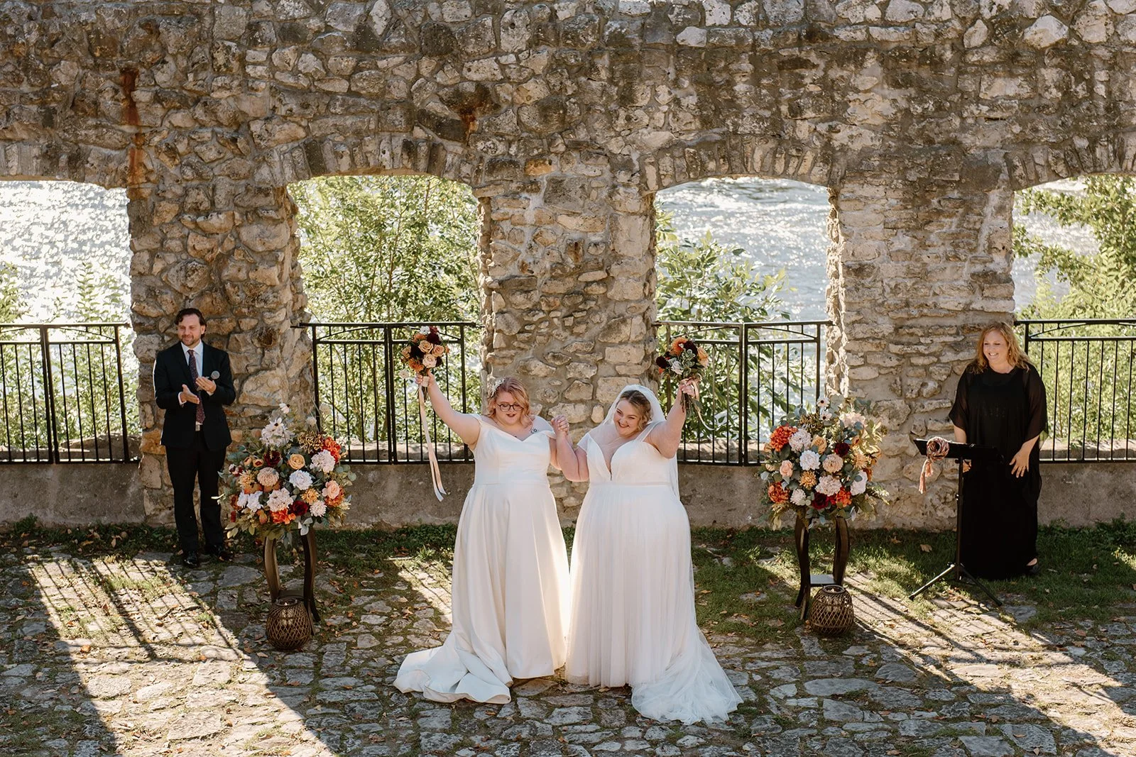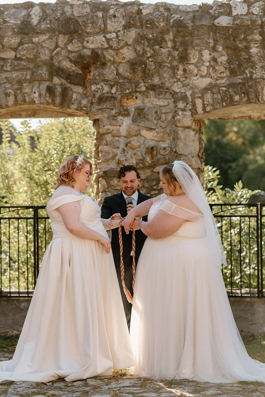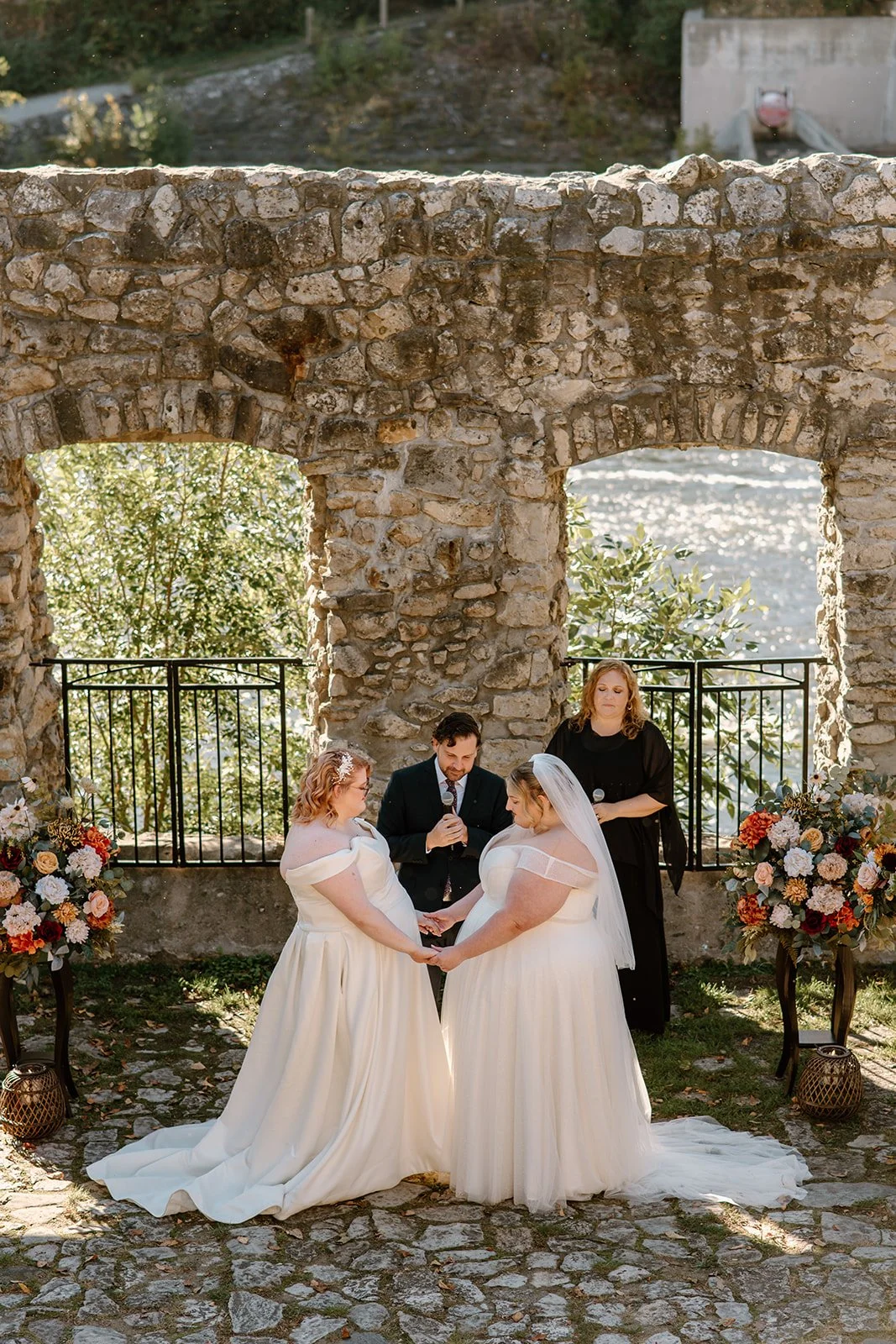 With all of their loved ones in the amphitheatre style seating at Mill Race Park, their wedding ceremony took place in front of the beautiful window shaped ruins with a view of the river flowing behind them. Though they were already married on paper, their vows and hand fasting ceremony in front of all their family and friends was an emotional experience for us all.