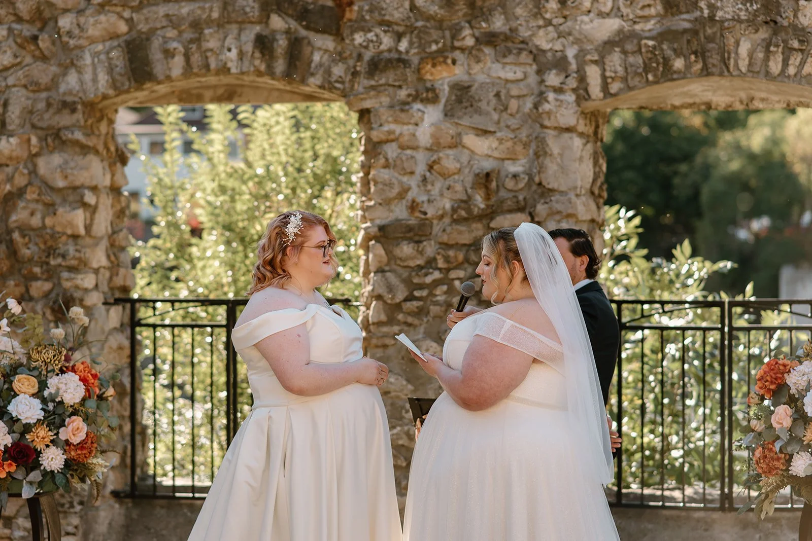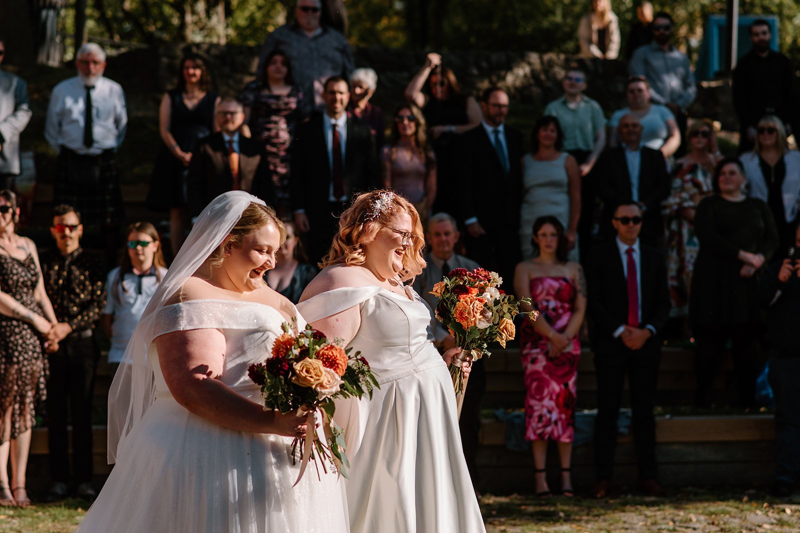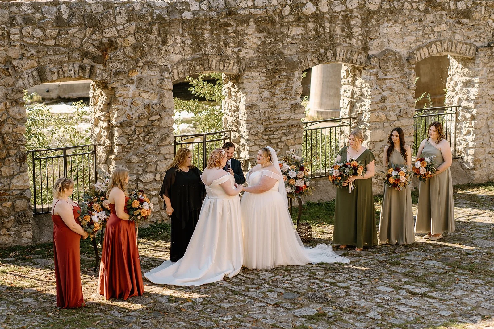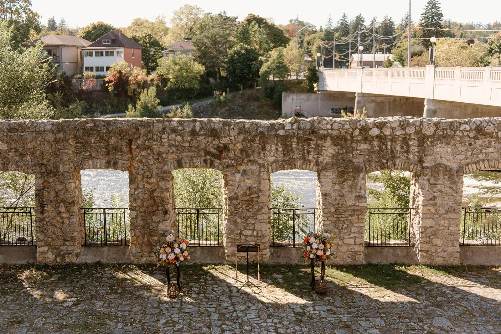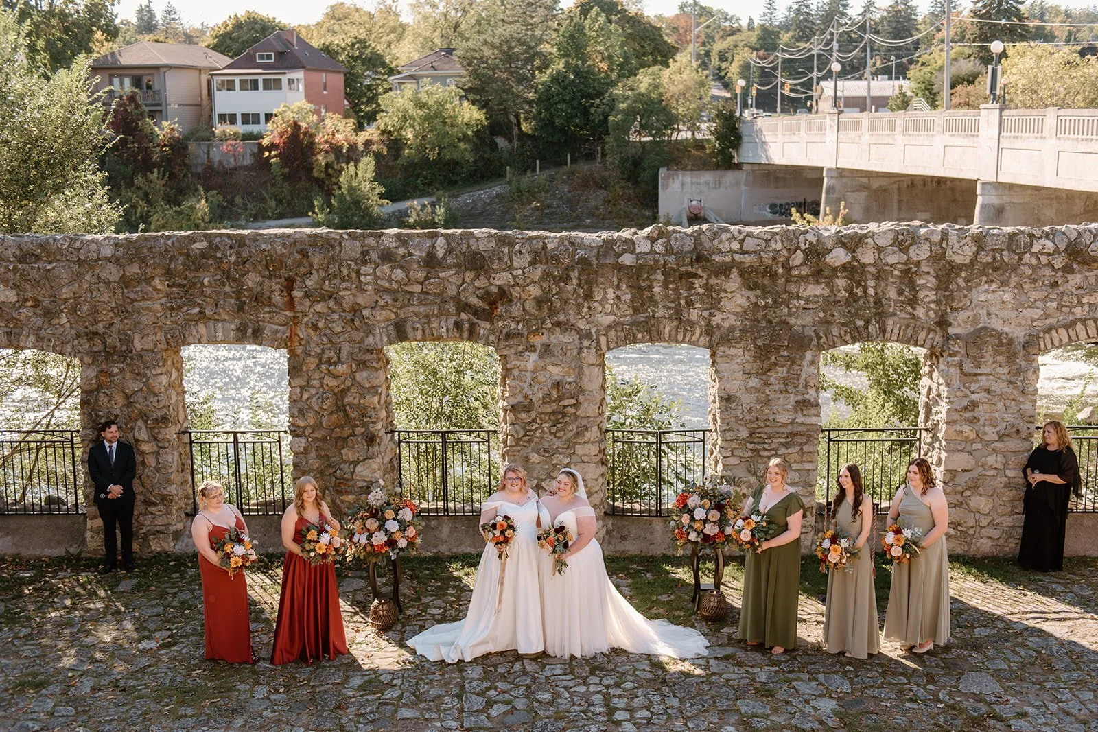 With all of their loved ones in the amphitheatre style seating at Mill Race Park, their wedding ceremony took place in front of the beautiful window shaped ruins with a view of the river flowing behind them. Though they were already married on paper, their vows and hand fasting ceremony in front of all their family and friends was an emotional experience for us all.