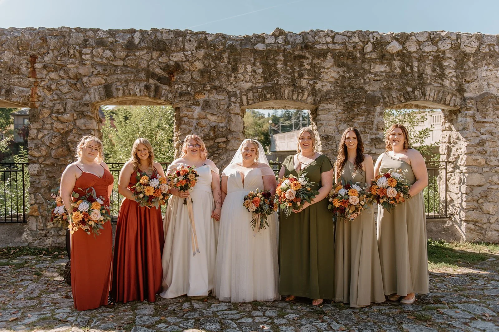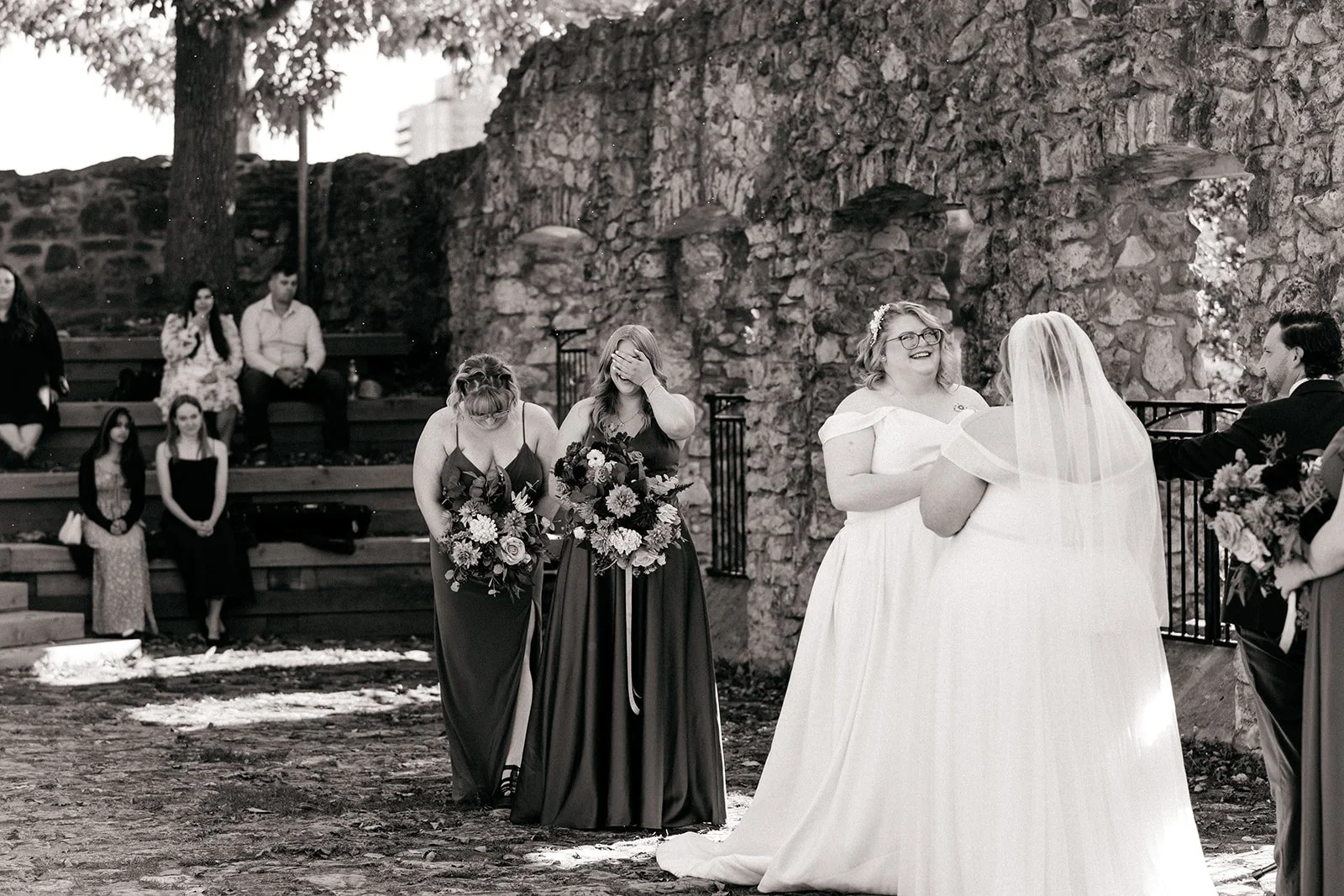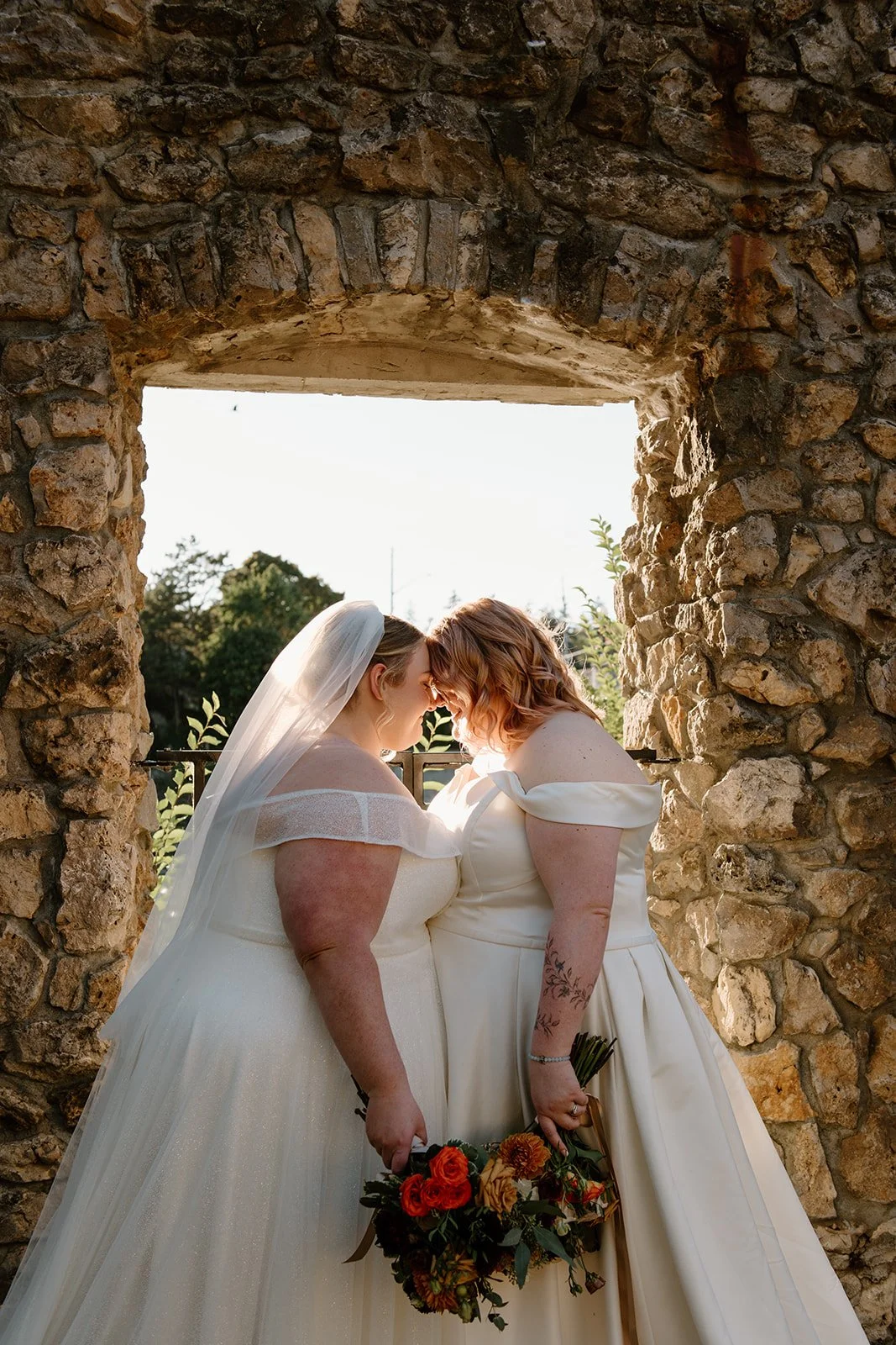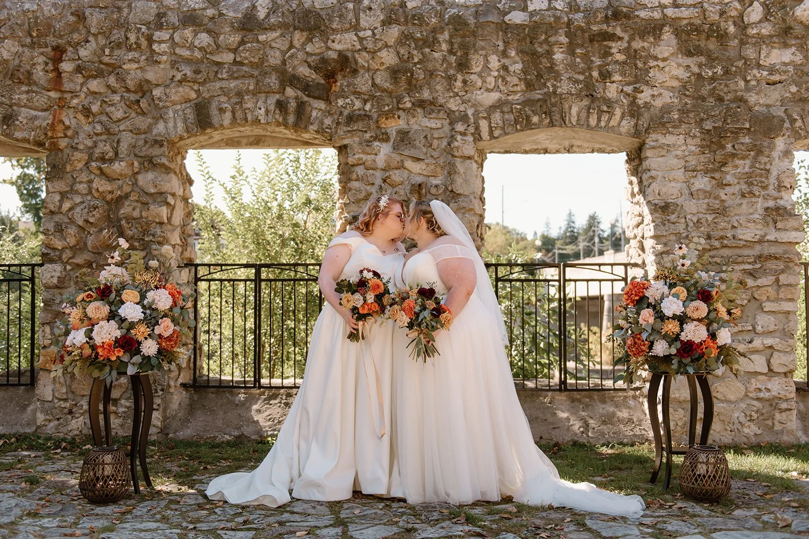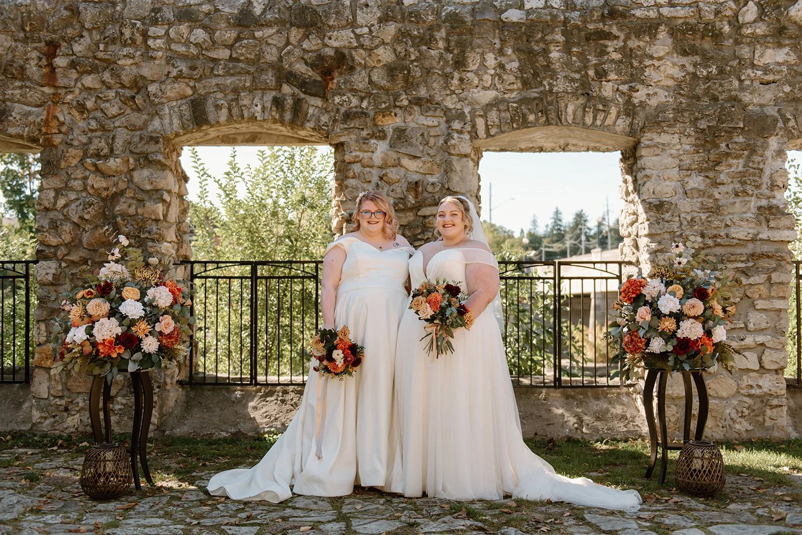 With all of their loved ones in the amphitheatre style seating at Mill Race Park, their wedding ceremony took place in front of the beautiful window shaped ruins with a view of the river flowing behind them. Though they were already married on paper, their vows and hand fasting ceremony in front of all their family and friends was an emotional experience for us all.
