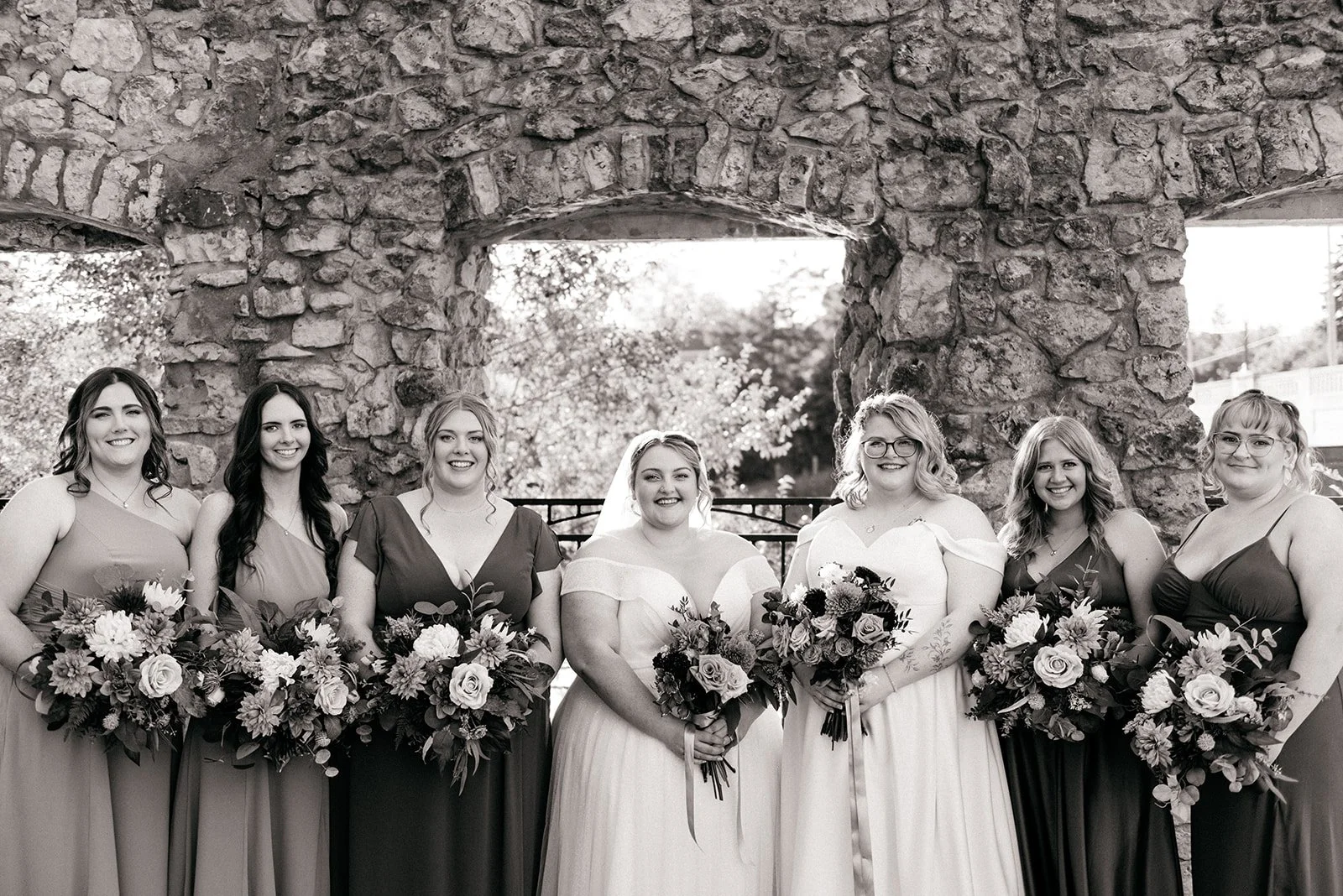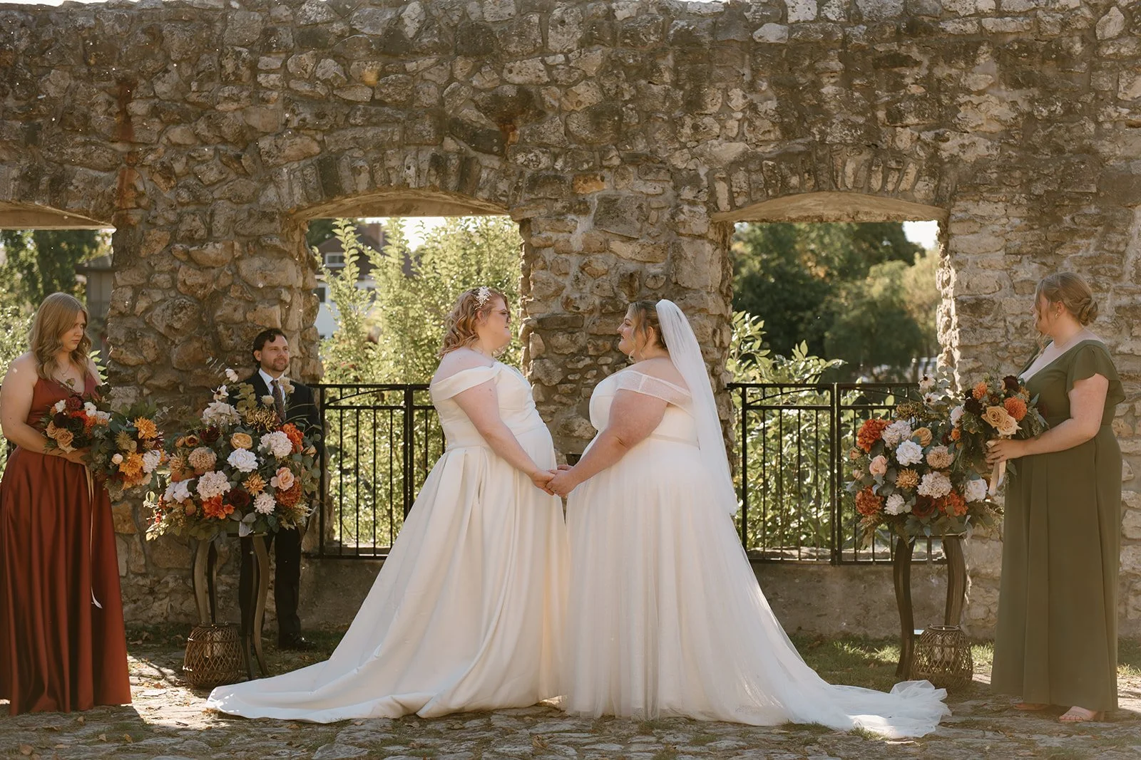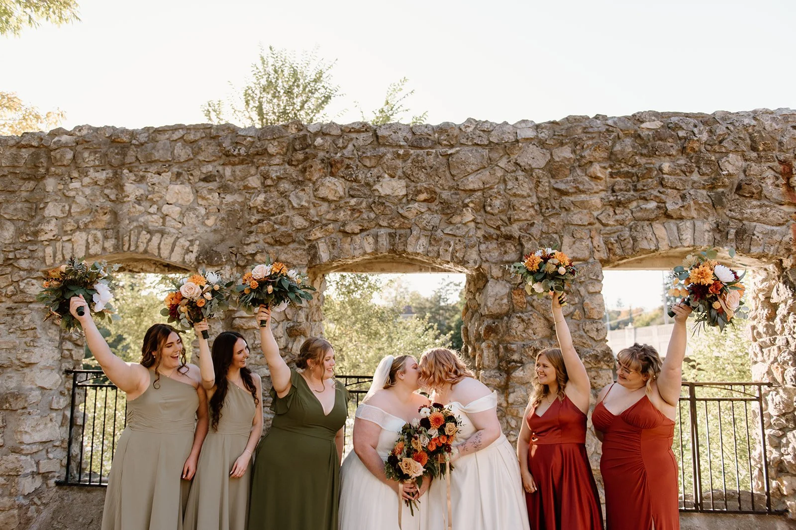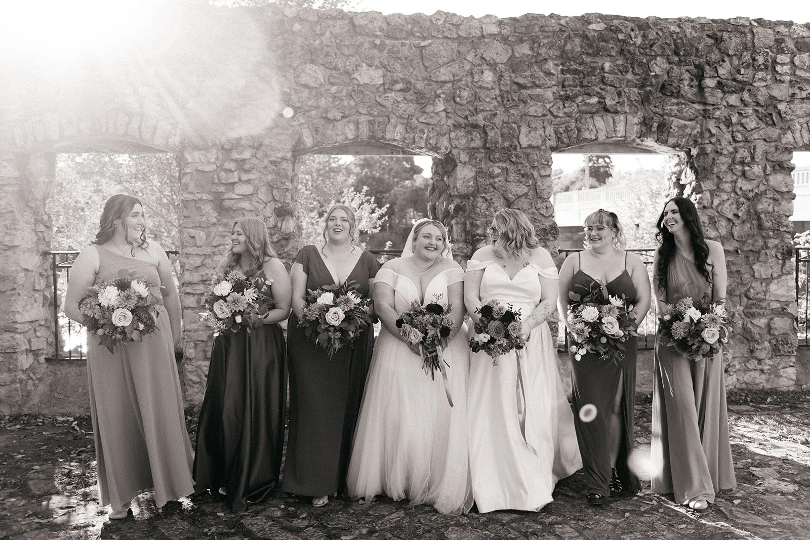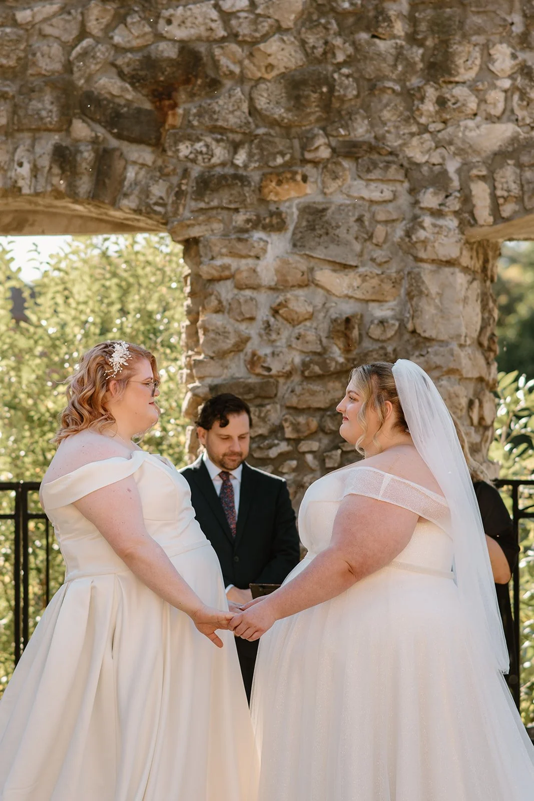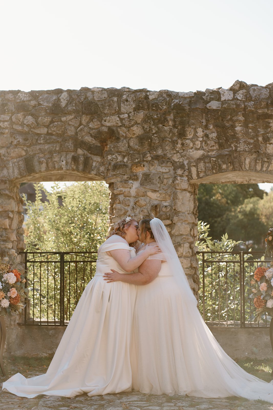 With all of their loved ones in the amphitheatre style seating at Mill Race Park, their wedding ceremony took place in front of the beautiful window shaped ruins with a view of the river flowing behind them. Though they were already married on paper, their vows and hand fasting ceremony in front of all their family and friends was an emotional experience for us all.