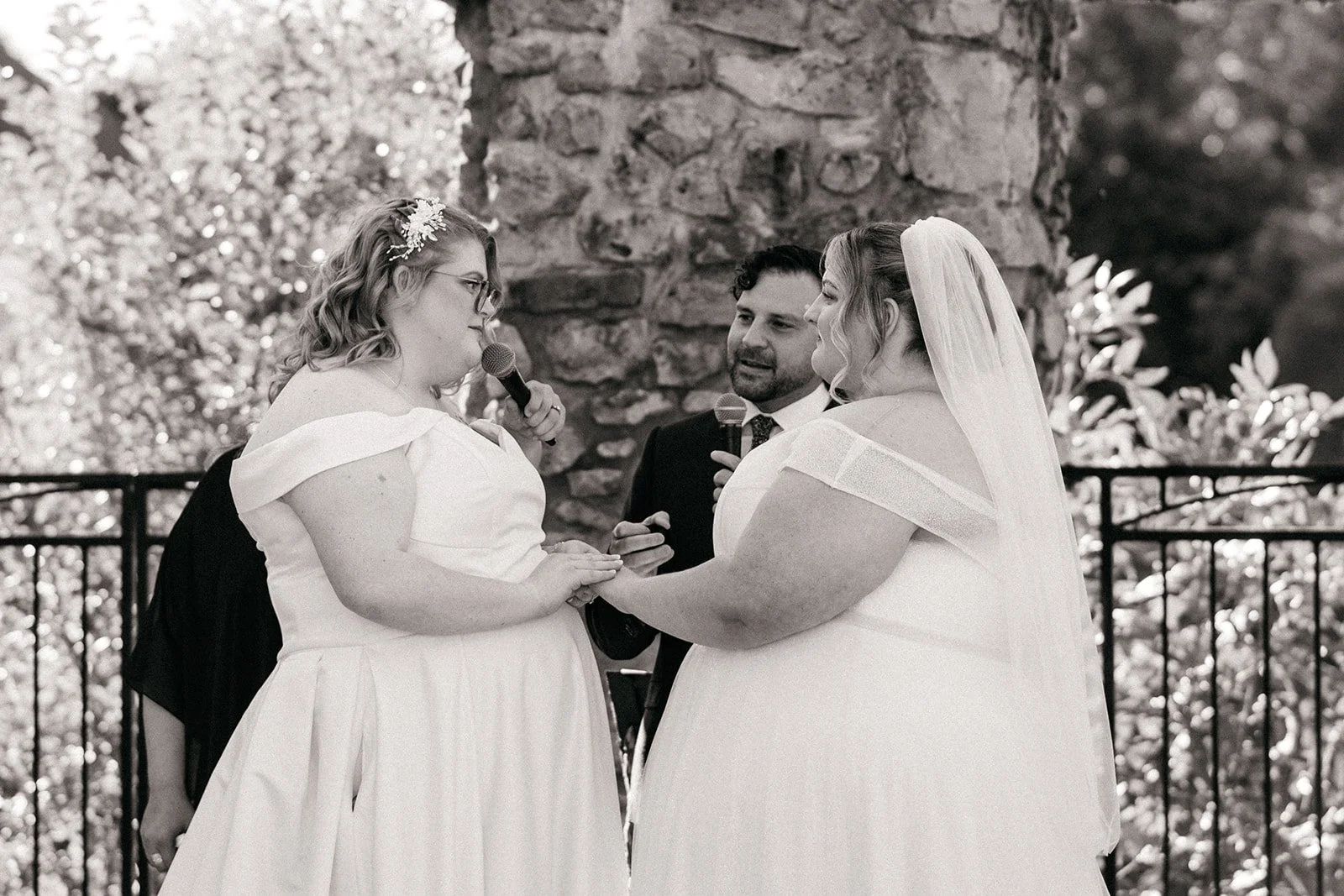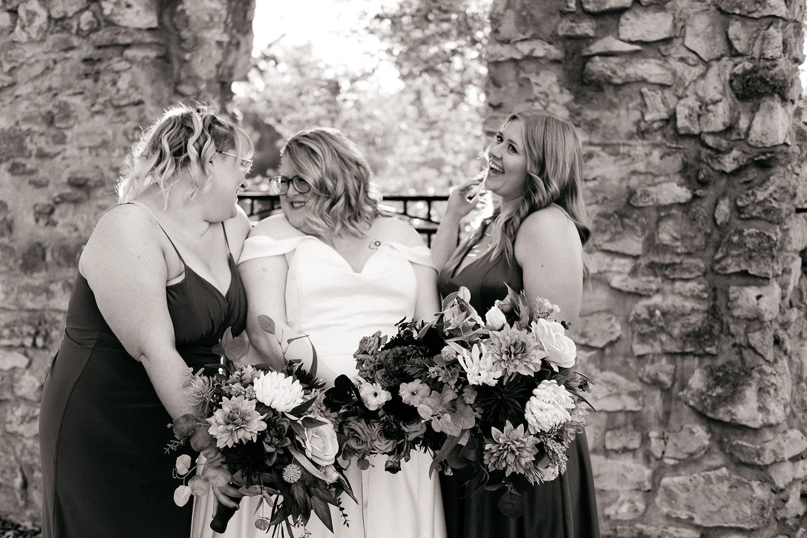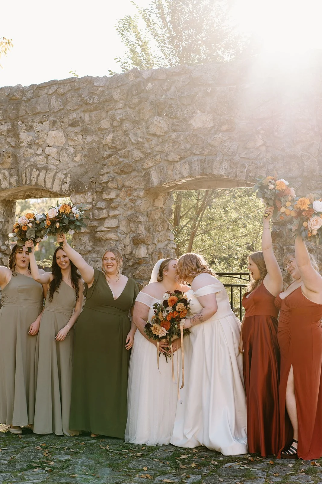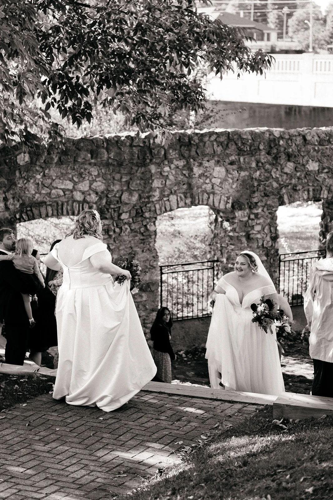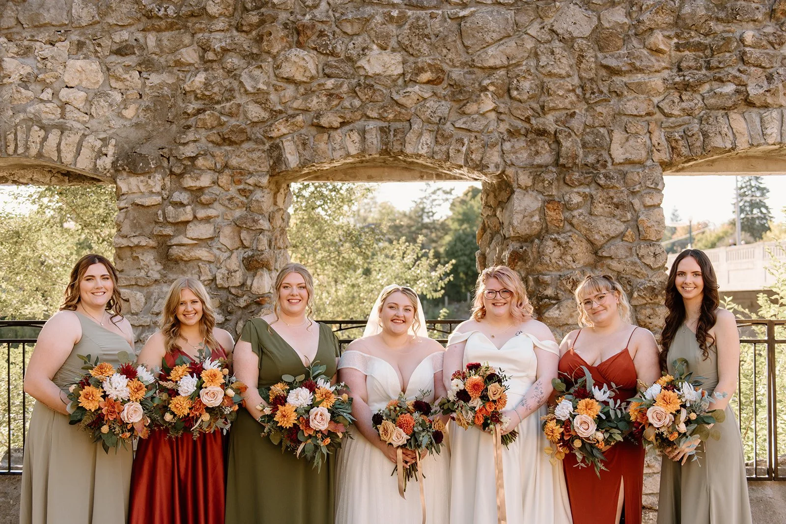 With all of their loved ones in the amphitheatre style seating at Mill Race Park, their wedding ceremony took place in front of the beautiful window shaped ruins with a view of the river flowing behind them. Though they were already married on paper, their vows and hand fasting ceremony in front of all their family and friends was an emotional experience for us all.