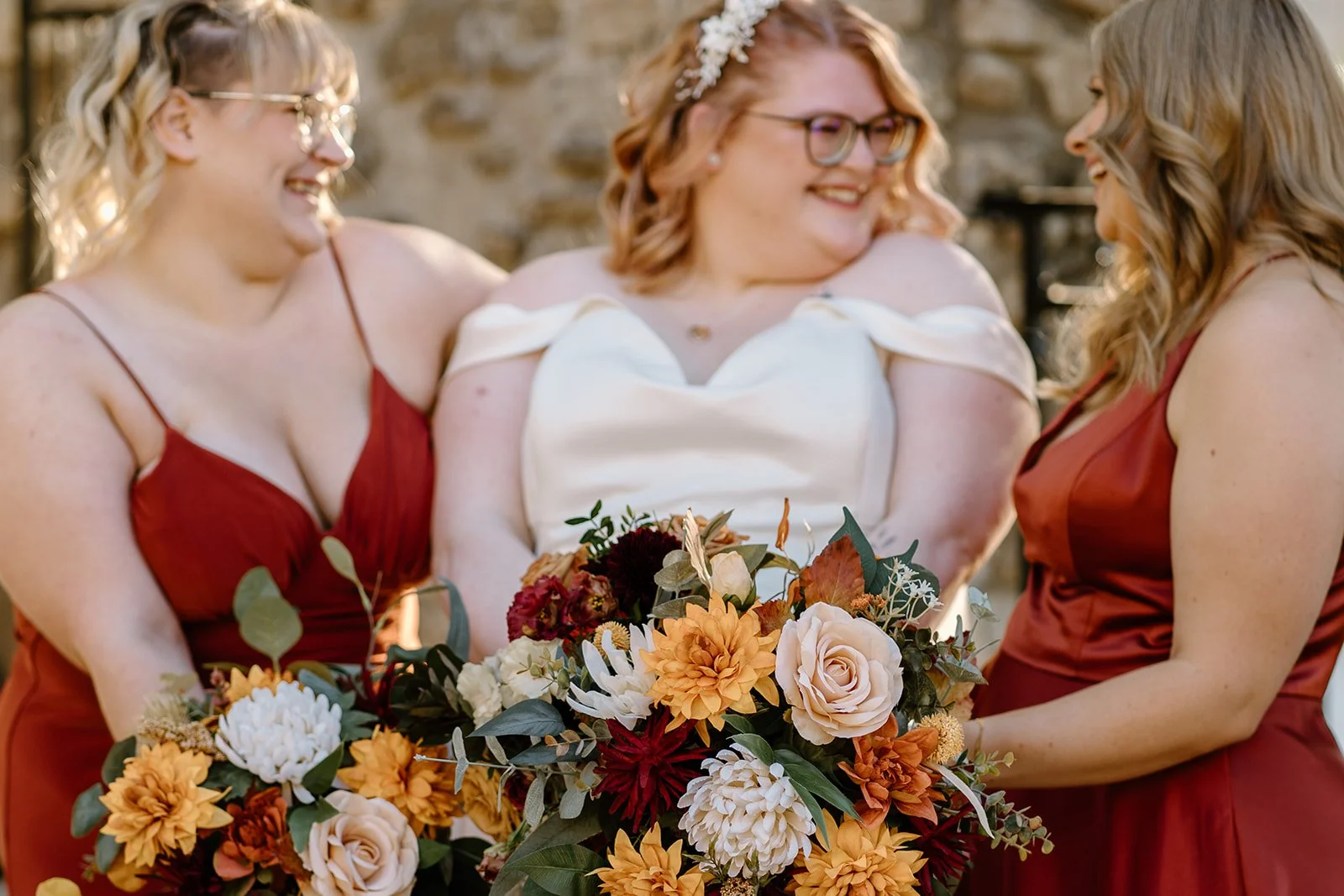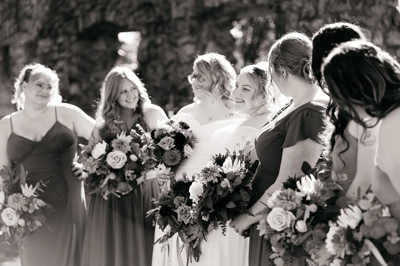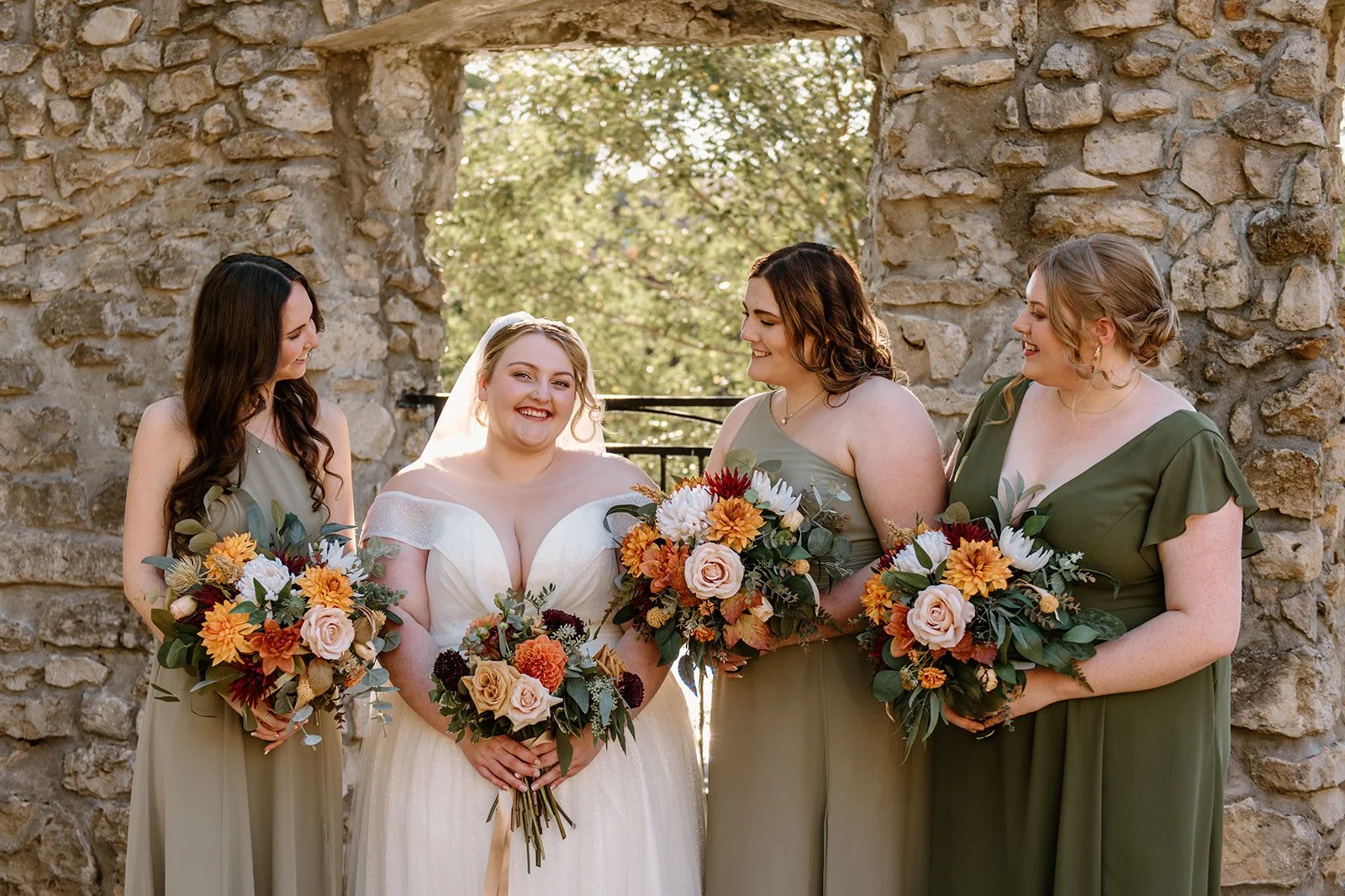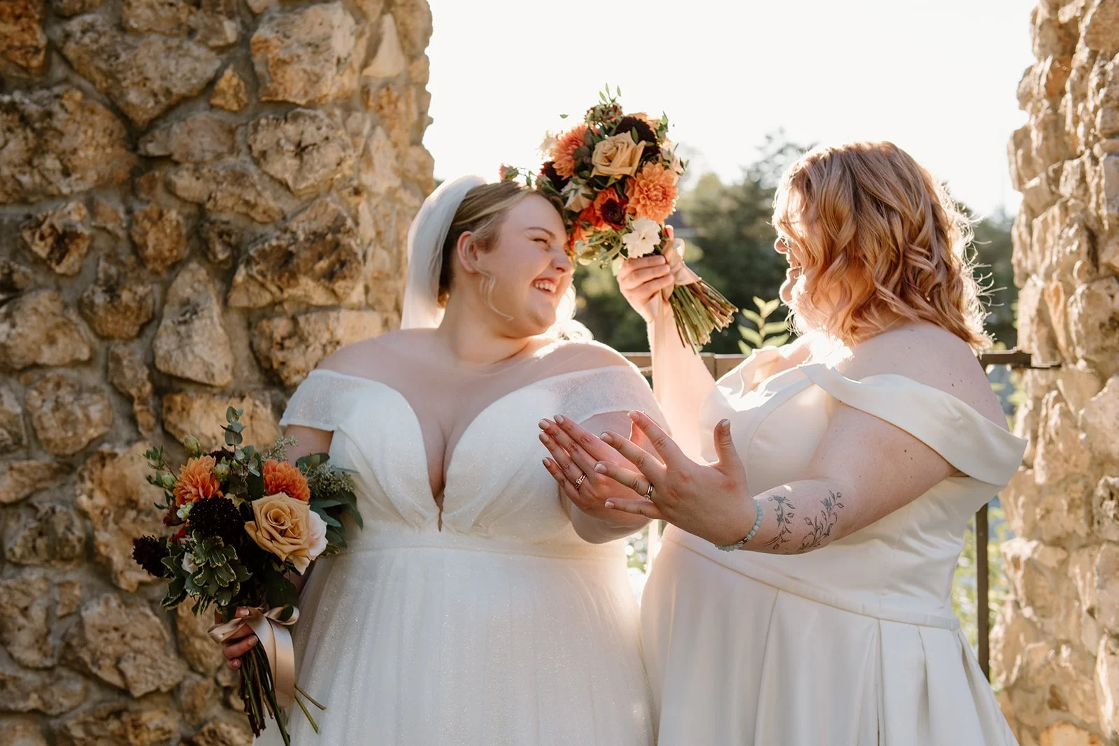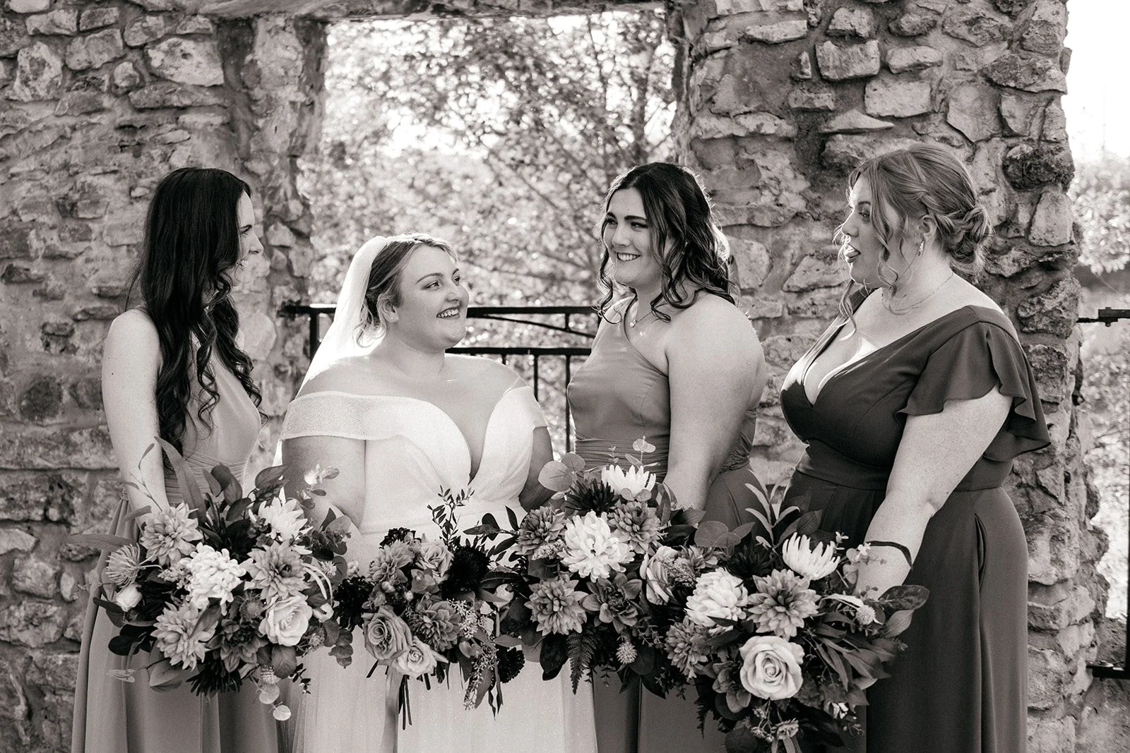 With all of their loved ones in the amphitheatre style seating at Mill Race Park, their wedding ceremony took place in front of the beautiful window shaped ruins with a view of the river flowing behind them. Though they were already married on paper, their vows and hand fasting ceremony in front of all their family and friends was an emotional experience for us all.