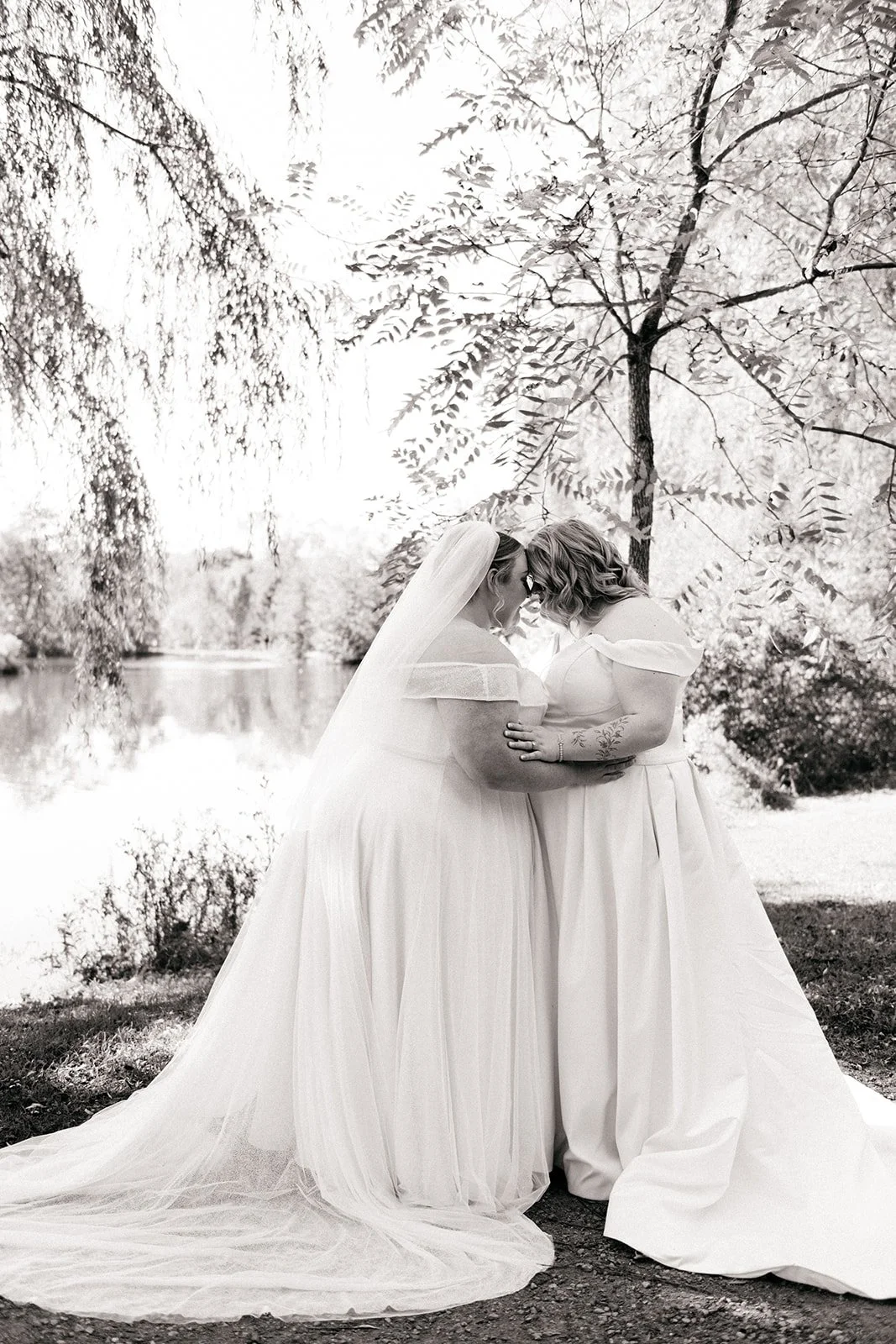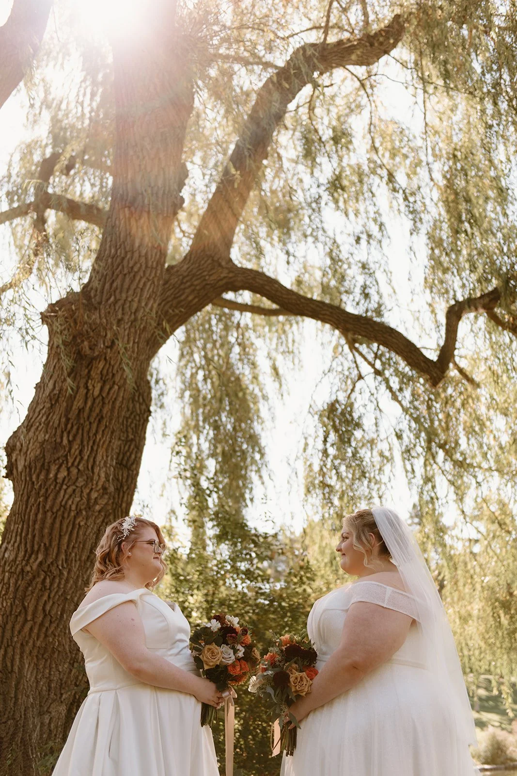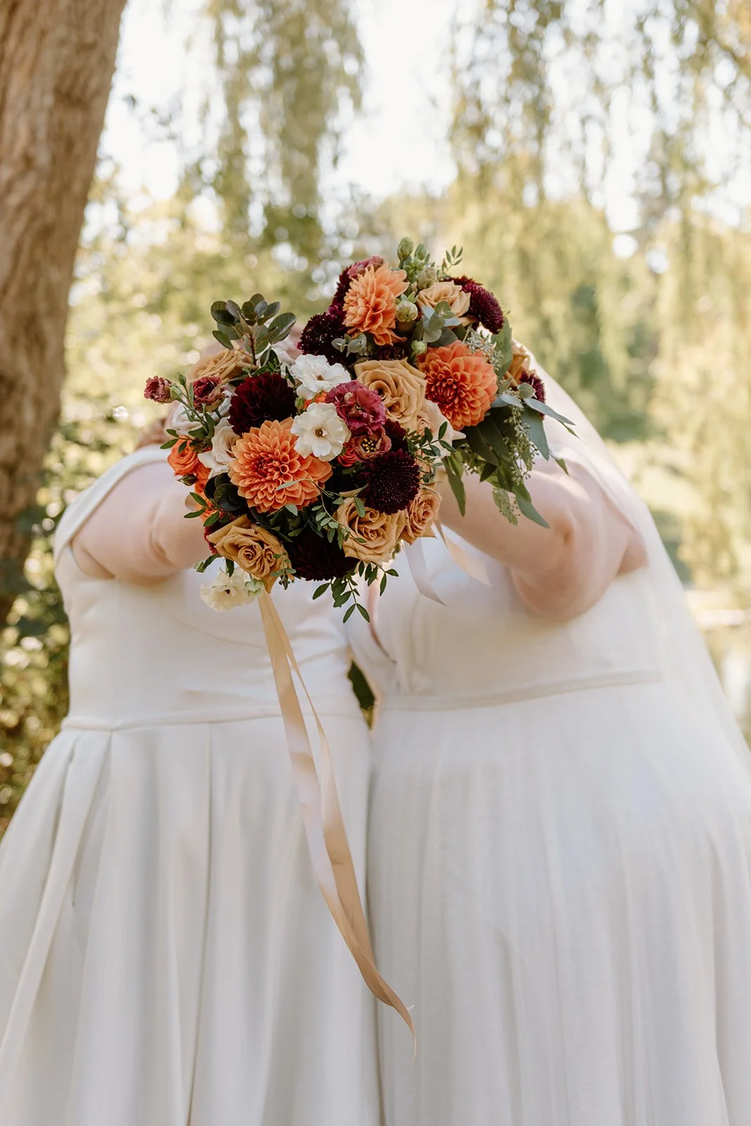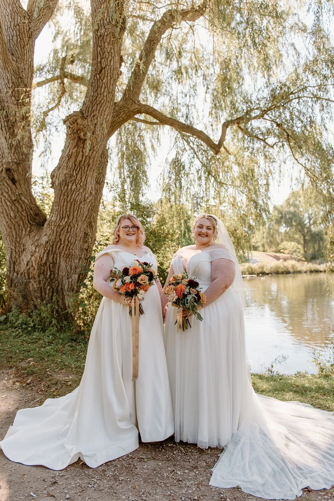 On a sunny October afternoon, I had the great pleasure of photographing my dear friends C and G on their wedding day. As we had celebrated their elopement a few months prior, there was an air of calmness and stress-free joy floating through the wedding party that day. One of my favourite parts of the day was the very first thing we did - a nod to that private elopement by recreating their portraits in the same corner of a park in Cambridge. Revisiting that same willow tree by the water with just the two of them felt like such a special, full-circle moment!