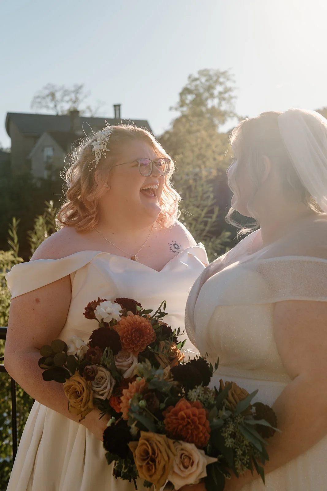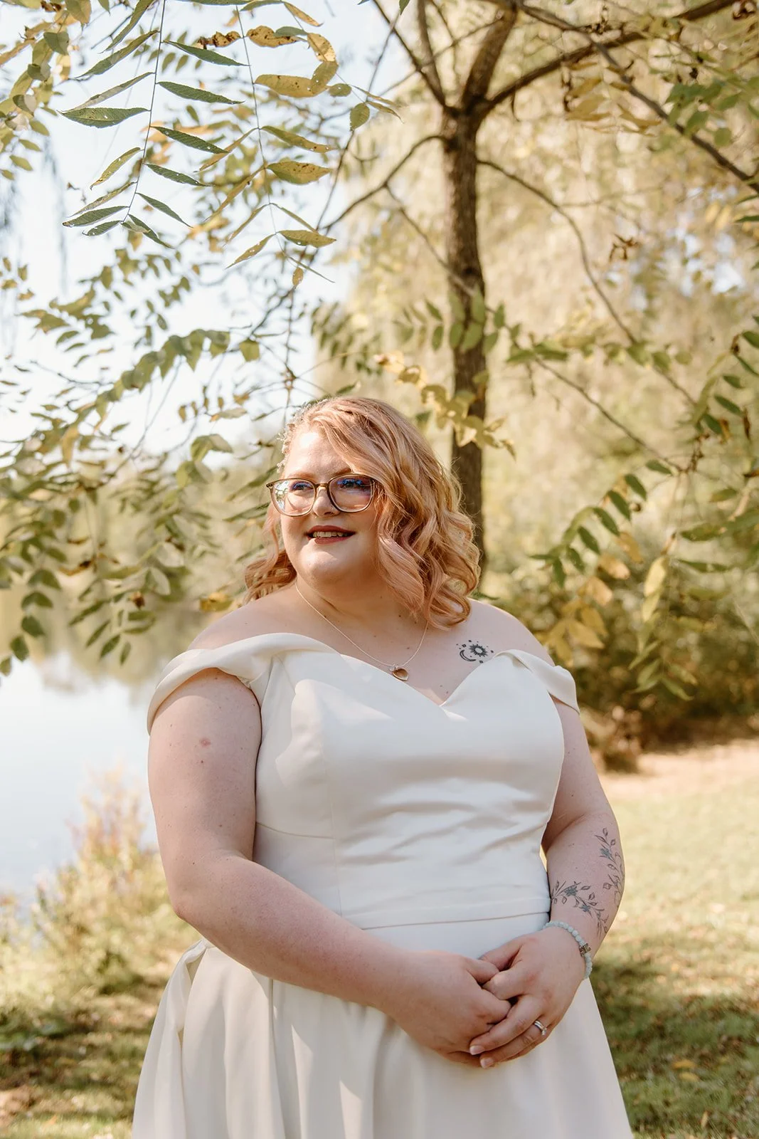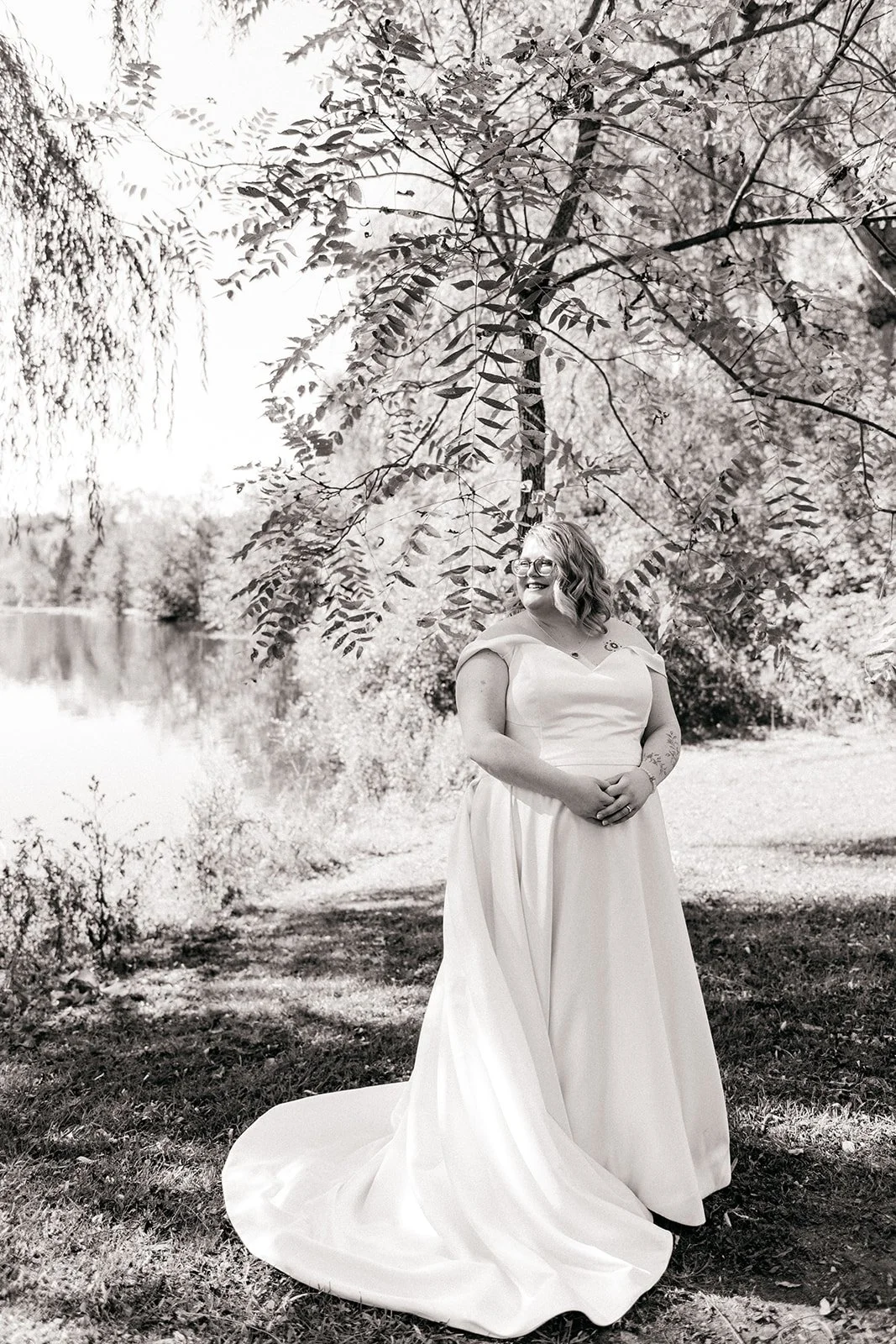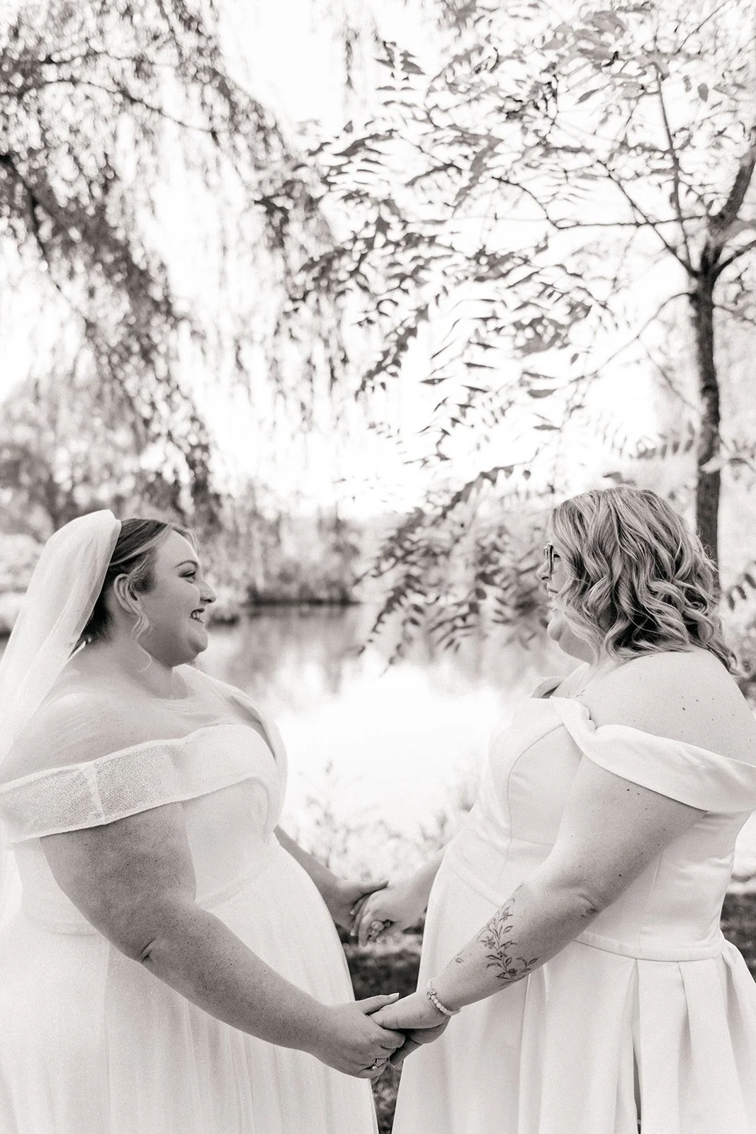 On a sunny October afternoon, I had the great pleasure of photographing my dear friends C and G on their wedding day. As we had celebrated their elopement a few months prior, there was an air of calmness and stress-free joy floating through the wedding party that day. One of my favourite parts of the day was the very first thing we did - a nod to that private elopement by recreating their portraits in the same corner of a park in Cambridge. Revisiting that same willow tree by the water with just the two of them felt like such a special, full-circle moment!